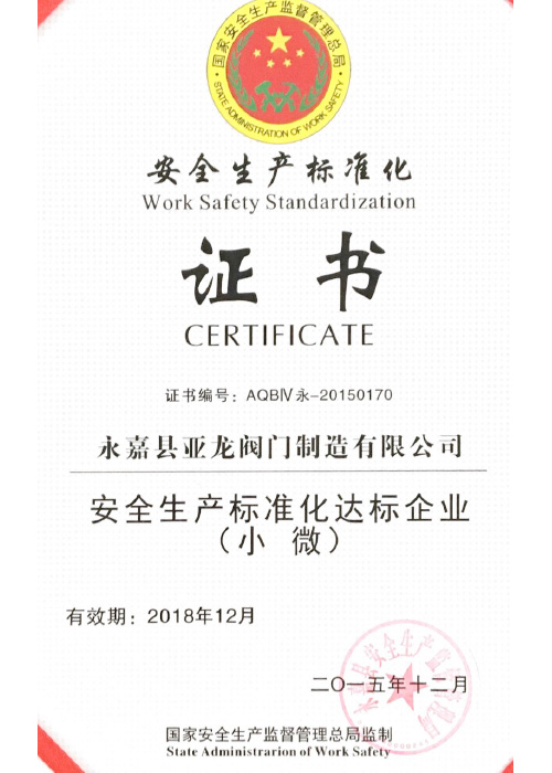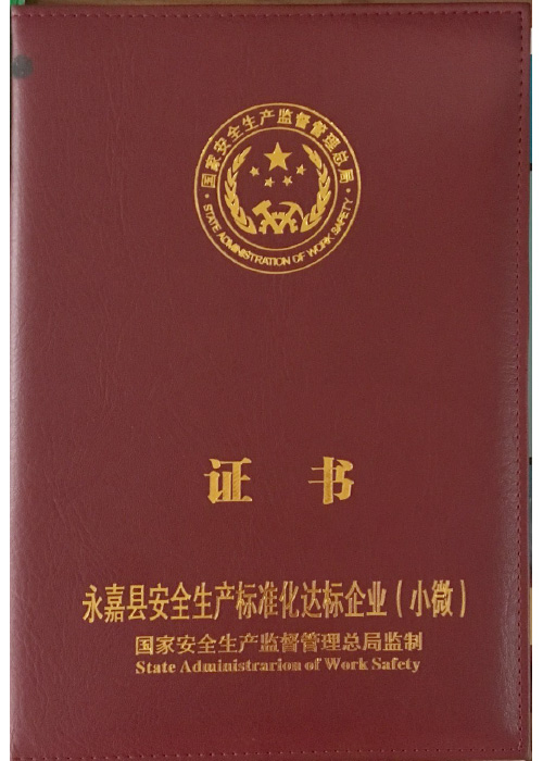 安全生產(chǎn)標(biāo)準(zhǔn)化達(dá)標(biāo)企業(yè)證書